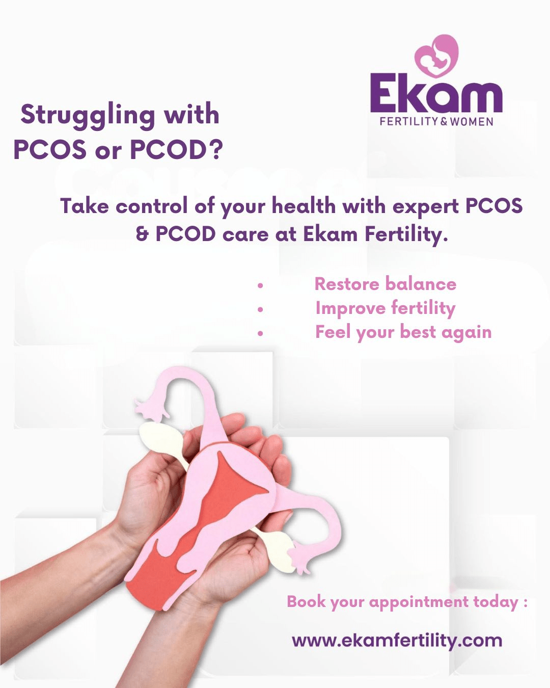 At Ekam Fertility, our goal is to provide holistic and personalized solutions for women battling endometriosis. With modern diagnostics, advanced surgical care, and fertility-focused treatments, we empower women to overcome challenges and move closer to their dream of parenthood.
