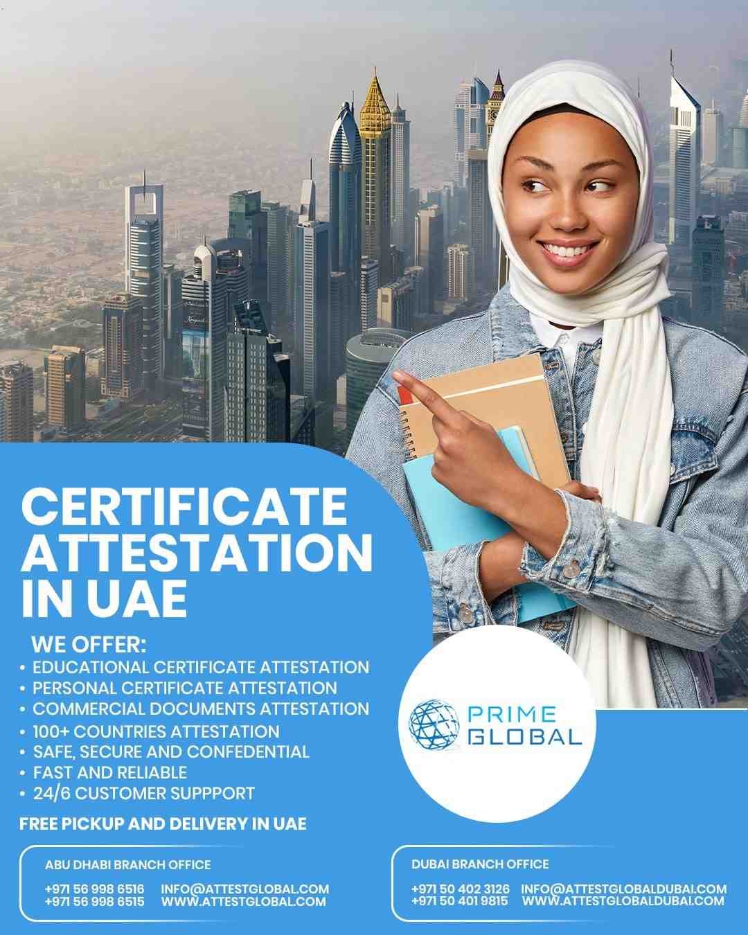 Prime global attestation is the UAE no.1 attestation services in abu dhabi, Dubai and UAE. We do attestation for all types of documents like degree, diploma, marriage, birth, mofa, tc and more at the lowest prices. We do have services for 100+ countries attestation.