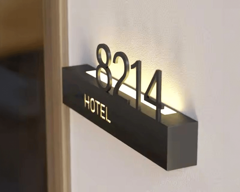 For luxury hotels, room signage can be accomplished in luxurious materials like brushed metal or frosted glass with laser-cut characters for an elegant look. Budget hotels can go for cost-effective vinyl or acrylic signs without losing on readability. Some of the key design recommendations are: