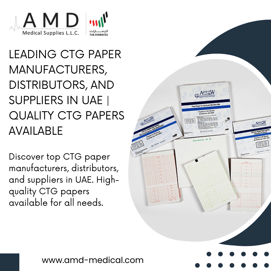 AMD Medical stands as a premier name in the medical supply industry, recognized for its commitment to providing top-quality products and innovative solutions to healthcare professionals across Saudi Arabia. As trusted CTG paper manufacturers in Saudi Arabia, we offer a wide range of specialized medical supplies, from ECG gel suppliers to ultrasound thermal paper rolls manufacturers and disposable electrodes distributors. Our reputation as a leading supplier and distributor of essential medical equipment makes us a reliable partner for hospitals, clinics, and medical facilities throughout the region.
