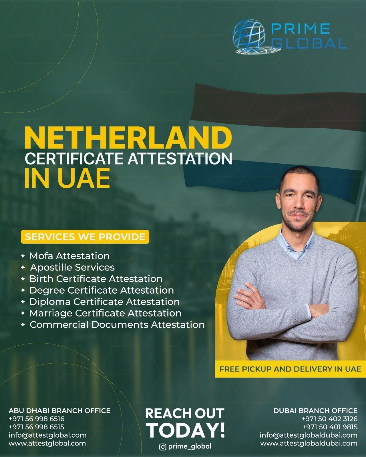 In an increasingly globalized world, the need for authenticating documents for various purposes has become imperative. For individuals from the Netherlands seeking to utilize their certificates in the United Arab Emirates (UAE), navigating the attestation process is crucial. This comprehensive guide sheds light on the significance, process, and benefits of Netherland certificate attestation services in the UAE.